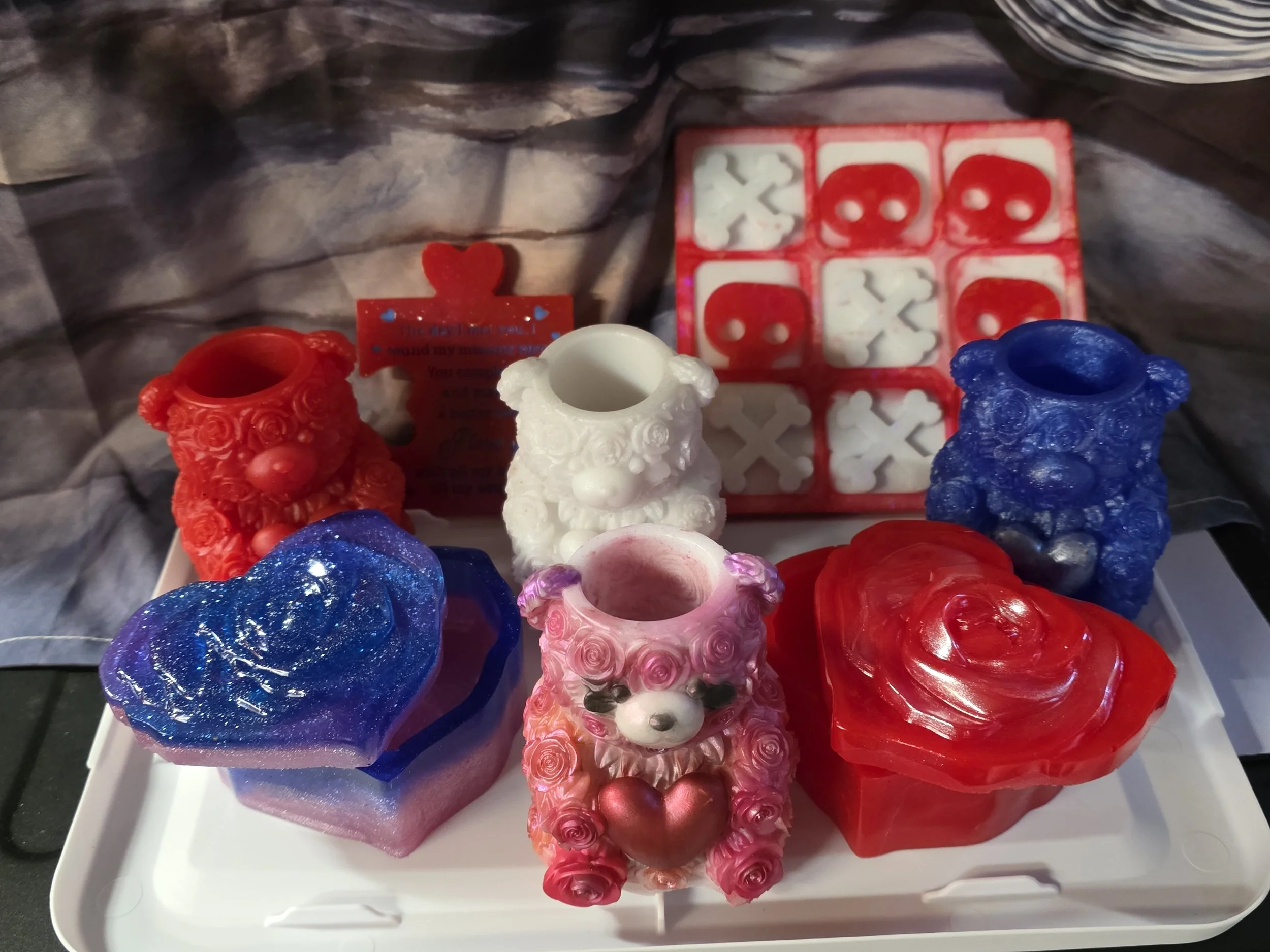 A cute handmade Valentine’s Tic Tac Toe game featuring a glossy resin board and heart‑shaped pieces. Perfect for date nights, gifts, or adding a sweet touch to your Valentine’s décor. Durable, fun, and made with love.